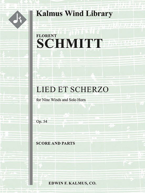 French composer Florent Schmitt (1870-1958) wrote the first version of Lied et Scherzo, Op. 54 for solo horn and wind nonet in 1910. It was composed to be the horn examination piece for the Conservatoire de Paris that year, and it was premiered by the context winner on July 11, 1910. It is a unique work, full of the mixture of late-German Romanticism and the harmonies of French impressionism that makes Schmitt difficult to classify. As was common for Schmitt's works, he created alternate versions featuring different instruments. Aside from the solo horn and wind nonet version, versions for horn and piano, cello and piano, and piano four-hands are also available. Instrumentation: 1+Picc.1+EH.2.2: 1.0.0.0: Solo Horn in set.
