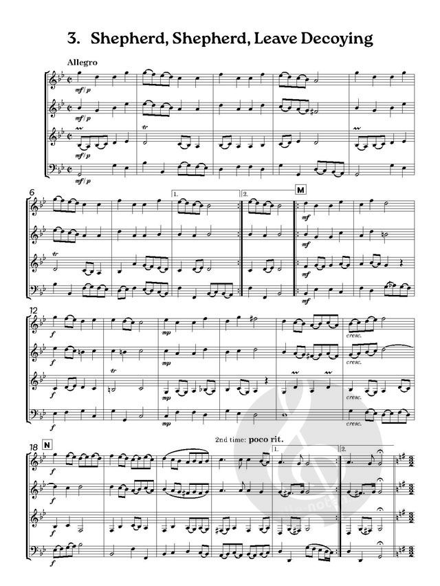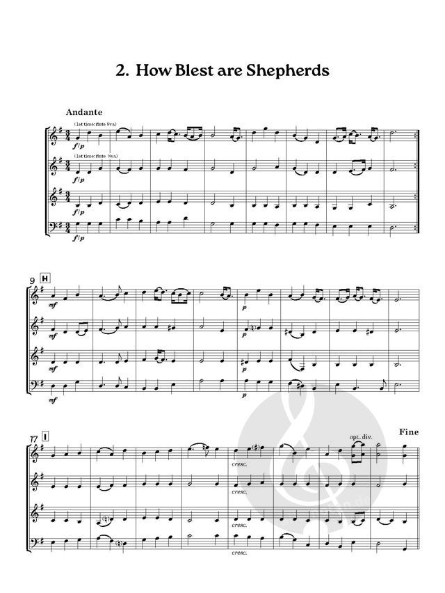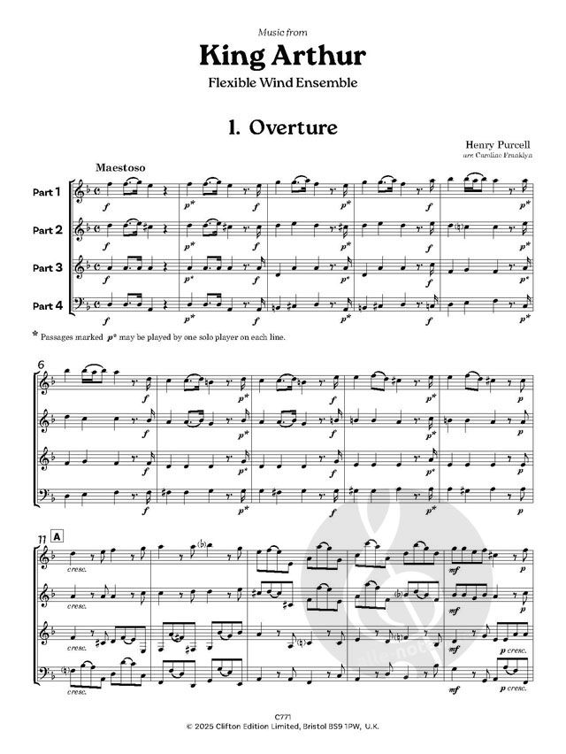 Instrumentierung. Dieses Set enthält: Vollständige Partitur und die folgenden Teile: Teil 1: in C (Flöte) und/oder in B (Klarinette/Sopransaxophon); Teil 2: in C (Flöte/Oboe) und/oder in B (Klarinette/Sopransaxophon); Teil 3: in B (Klarinette) und/oder in Es (Altsaxophon); Teil 4: in C (Fagott) und/oder in B (Tenorsaxophon) und/oder in B (Bassklarinette). Erstmals veröffentlicht im Jahr 2006 von Cwmni Cyhoeddi Oriana (Oriana Publications) in Y Barri, Glamorgan, Wales.