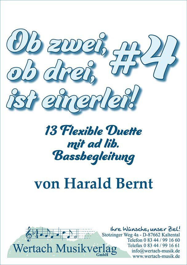 Die Stimmen 2Bb hoch und 2 C hoch wurden zur klanglichen Optimierung für diese Instrumente oktaviert und dadurch bedingt anspruchsvoller gestaltet! Vor allem für den Fall geeignet, dass die 1. + 2. Stimme mit dem gleichen Instrument besetzt werden!