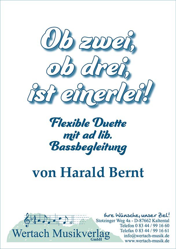 Alle Titel sind spielbar, sobald die 1.+2. Stimme jeweils 1x besetzt sind! Eine zusätzliche Klangsteigerung kann durch den Einsatz der ad lib. eingerichteten Bassstimme erzielt werden! Es ist ebenfalls möglich, wenn die Bläser(innen) ein wenig Rücksicht beim spielen nehmen, diese Stimmen auch mehrfach (chorisch) zu besetzen!