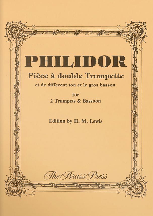 One of the interesting anomalies in the literature of the Baroque trumpet is a little piece by André Philidor (l'ainé), entitled ' Pièce a double Trompette et de différent ton et Ie gros basson de Philidor'. It is found in a small oblong volume in the Paris Bibliothèque Nationale (Res. 921) entitled ' Pièces de trompettes / de Mrs de la Lande, Rebelle et Philidor / L 'aisné ... et enrichy des Pièces de Mr Huguenet l'aisné compositeur des triots de trompette plus antien ordinaire de la Musique du Roy.' This manuscript collection of 283 pages is one of two collections which comprise the extant music for the trumpet and timpani ensemble of Louis XIV's ' Grand Ecurie'. The ' Pièce a double Trompette' (pages 60-61) is unusual in that it embodies the apparent use of a great many extra-harmonic tones in the trumpet parts. However, on closer examination, it appears likely that what was actually intended was the use of at least two players on each of the trumpet parts: one playing a normal trumpet in C, which was the instrument used in the French trumpet ensembles of the late seventeenth century, and one playing a trumpet pitched in low G. Although it was customary for the trumpeters of the ' Grande Ecurie' to perform their pieces with multiple players on each part, it probably would be out of character in this piece, since Philidor has specified the bassoon as the bass instrument. The use of a keyboard continuo instrument is not indicated. Philidor makes use of certain figures in the bassoon part which recall those he consistently used in the third trumpet parts (Basse de trompettes) of his trumpet ensembles, indicating that, perhaps, he thought of the bassoon part in a similar manner (i.e., a single bass line without harmonization). H. M. Lewis