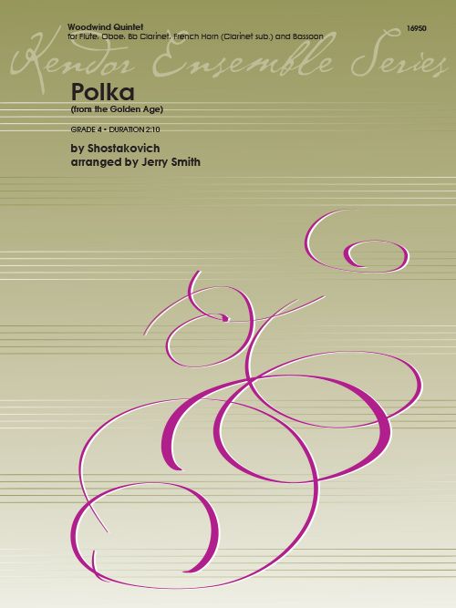 This famous parody of a Polish polka with abundant 'wrong' notes (dissonances), wide melodic leaps, and sudden dynamic changes is a sterling example of contemporary music with high educational and entertainment value. In print since 1973, this quintet setting has become a popular contest and recital standard. Duration 2:10