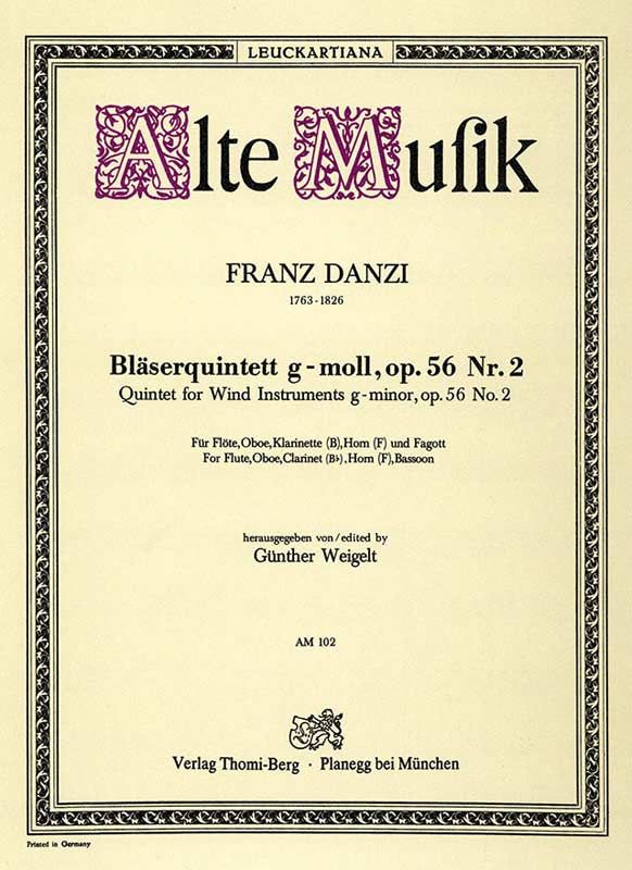 - Bläserquintett (Querflöte, Oboe, Klarinette in A, Horn in D und Fagott)
