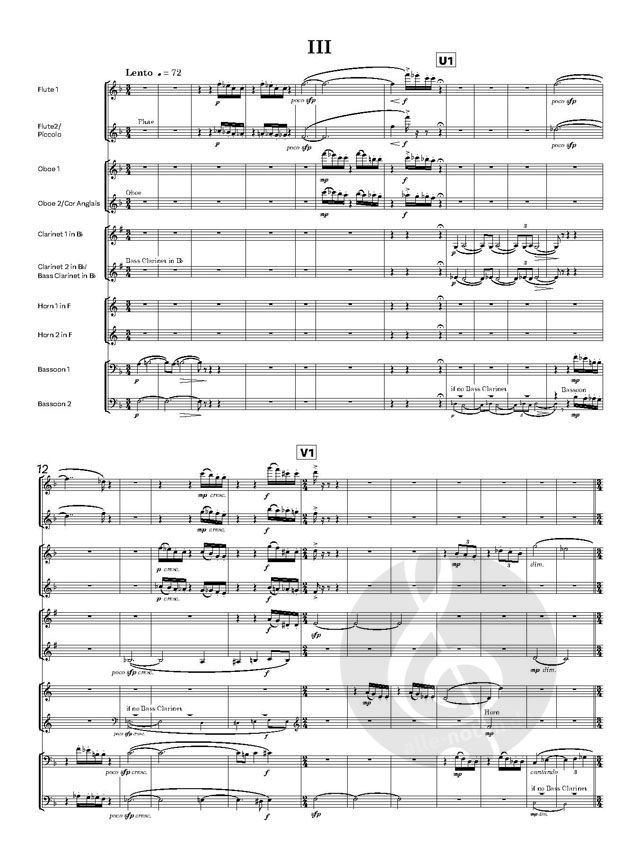 Viele der Kompositionen von Nicholas Sims-Williams sind für Blasinstrumente. Er ist selbst Hornist und mit einer Oboistin verheiratet. Diese Serenade ist ein umfangreiches Stück von etwa 18 Minuten Dauer. Es ist für 2 Flöten, 2 Oboen, 2 Klarinetten, 2 Hörner und 2 Fagotte geschrieben, wobei die zweite Flöte als Piccoloflöte, die zweite Oboe als Englischhorn (nur im ersten Satz) und die zweite Klarinette als Bassklarinette (im letzten Satz) fungiert. Wenn keine Bassklarinette zur Verfügung steht, sollte die zweite Klarinette die Alternativstimme für Klarinette in A spielen (siehe separate Stimme). Die anderen Instrumente sollten die in ihren Stimmen abgedruckten Bassklarinetten-Stichwörter spielen.