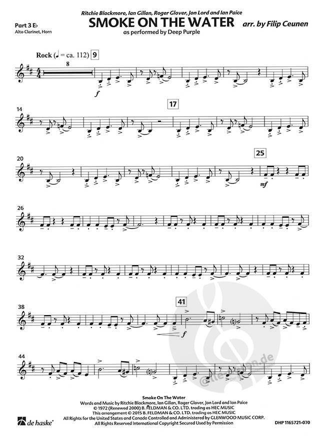 Der 1972 erschienene Superhit 'Smoke on the Water' von Deep Purple ist wahrscheinlich einer der kultigsten Rocksongs, der je geschrieben wurde. Dieses Stück, das auf einer wahren Begebenheit basiert, ist über mehrere Generationen hinweg immer noch sehr beliebt, sogar bei den heutigen Jugendlichen. Dieses Arrangement wurde speziell für eine vierstimmige variable Besetzung geschrieben, damit auch junge Blasorchester den Zauber von Deep Purple genießen können.