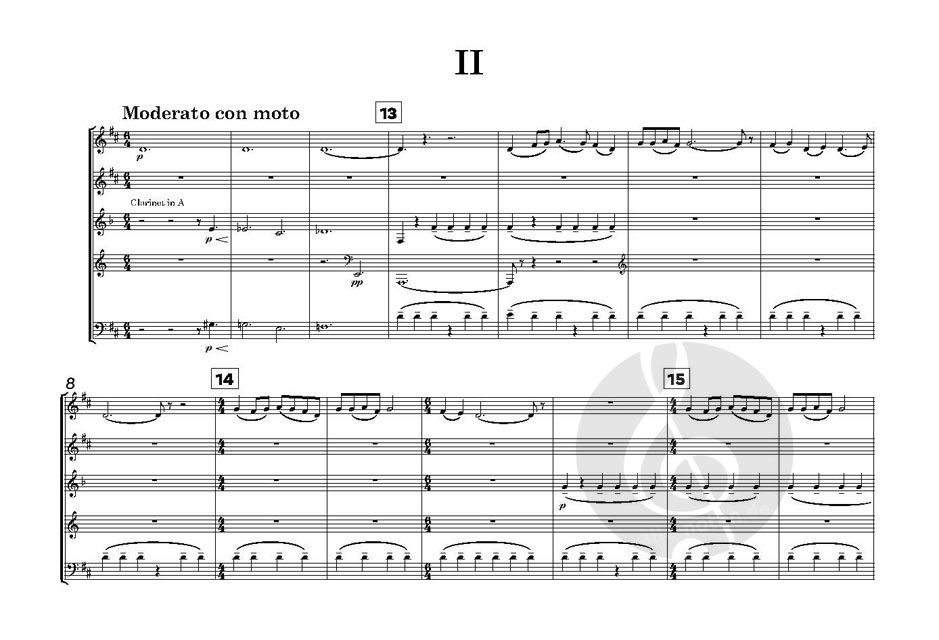 Flöte, Oboe, Klarinette in B und A, Horn in F und Fagott. Partitur und 5 Stimmen enthalten.
