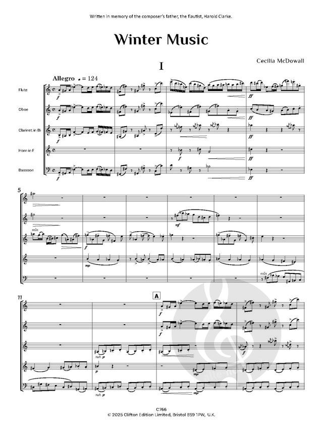Attraktives und zugängliches Bläserquintett in drei Sätzen. Der erste und der letzte Satz, voller Charakter und Humor, umschließen einen nachdenklichen und ergreifenden Mittelsatz, der von Schuberts Winterreise inspiriert ist. Es wurde zum Gedenken an den Vater des Komponisten geschrieben. Die Uraufführung fand im März 1992 durch das Sheridan Wind Quintet in St. Martin-in-the-Fields statt Aufnahme erhältlich: CD mit dem Titel "Piper's Dream", Label Deux Elles, DXL 1033.