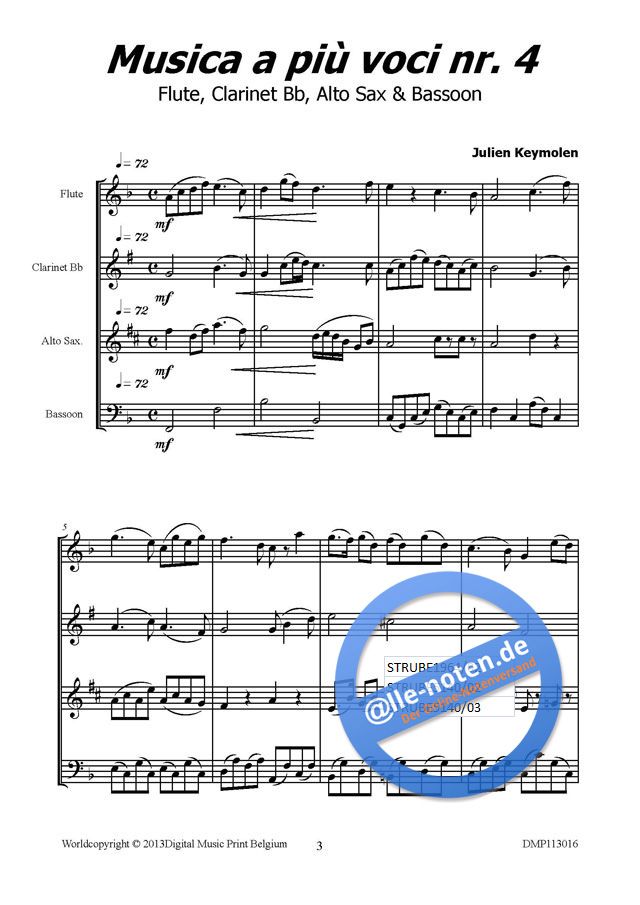 - Querflöte, Klarinette, Altsaxophon und Fagott