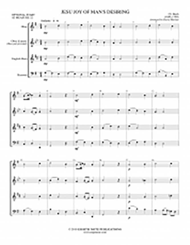 This very popular piece has been arranged many times for various instruments. It has been adapted here for a double reed ensemble consisting of oboe, oboe d'amore, english horn and bassoon. The chorale is played before the popular triple metre theme. All voices pass the weaving line between them and the chorale is stated above it.