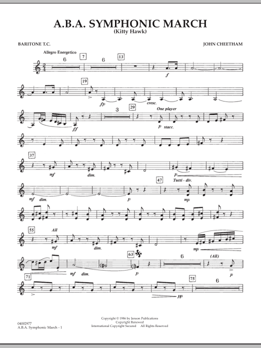Formerly published as Kitty Hawk, this energetic contemporary concert march was commissioned by the American Bandmasters Association. For mature groups this represents an important addition to the march repertoire with its fresh-sounding harmonic structure and creative twists and turns.