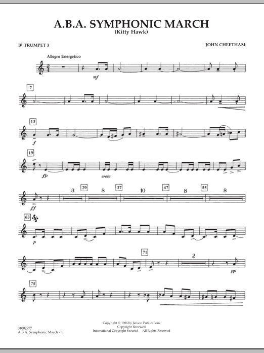 Formerly published as Kitty Hawk, this energetic contemporary concert march was commissioned by the American Bandmasters Association. For mature groups this represents an important addition to the march repertoire with its fresh-sounding harmonic structure and creative twists and turns.