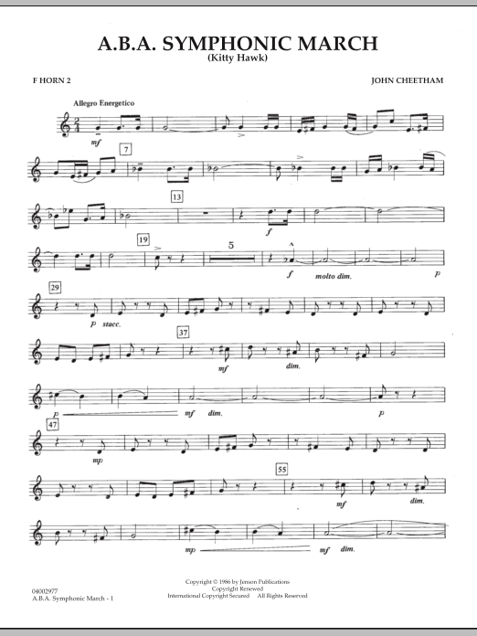 Formerly published as Kitty Hawk, this energetic contemporary concert march was commissioned by the American Bandmasters Association. For mature groups this represents an important addition to the march repertoire with its fresh-sounding harmonic structure and creative twists and turns.