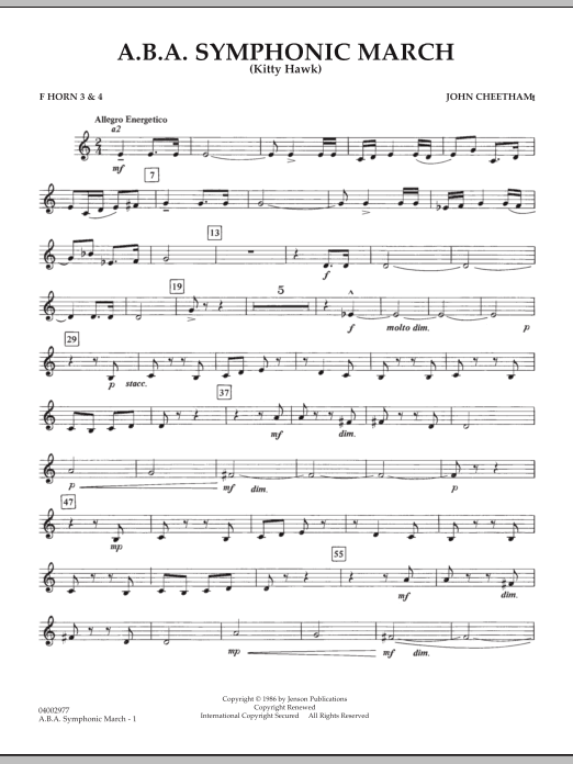 Formerly published as Kitty Hawk, this energetic contemporary concert march was commissioned by the American Bandmasters Association. For mature groups this represents an important addition to the march repertoire with its fresh-sounding harmonic structure and creative twists and turns.