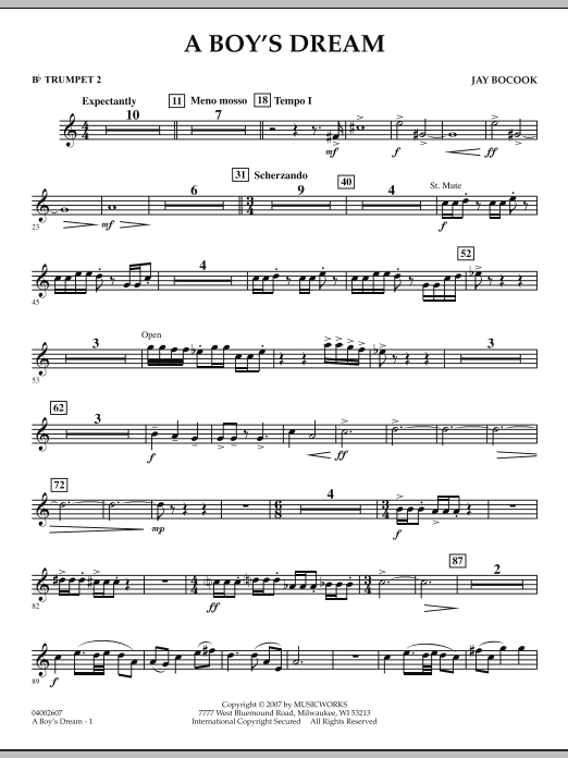 Written as a commission for the Palmetto Consortium of South Carolina, this expansive work explores the delight, wonderment and excitement of a young boy's hopes and dreams. Several stylistic elements combine to depict various emotions and imaginings. In the words of the composer, a boy's dreams are fantastical and mysterious, show great curiosity and yet most importantly, they are innocent and credulous. A terrific and fresh work for winds! Dur: 6:45