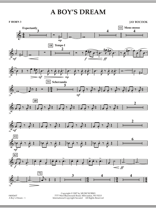 Written as a commission for the Palmetto Consortium of South Carolina, this expansive work explores the delight, wonderment and excitement of a young boy's hopes and dreams. Several stylistic elements combine to depict various emotions and imaginings. In the words of the composer, a boy's dreams are fantastical and mysterious, show great curiosity and yet most importantly, they are innocent and credulous. A terrific and fresh work for winds! Dur: 6:45