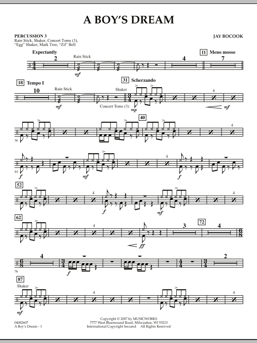 Written as a commission for the Palmetto Consortium of South Carolina, this expansive work explores the delight, wonderment and excitement of a young boy's hopes and dreams. Several stylistic elements combine to depict various emotions and imaginings. In the words of the composer, a boy's dreams are fantastical and mysterious, show great curiosity and yet most importantly, they are innocent and credulous. A terrific and fresh work for winds! Dur: 6:45
