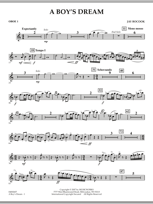 Written as a commission for the Palmetto Consortium of South Carolina, this expansive work explores the delight, wonderment and excitement of a young boy's hopes and dreams. Several stylistic elements combine to depict various emotions and imaginings. In the words of the composer, a boy's dreams are fantastical and mysterious, show great curiosity and yet most importantly, they are innocent and credulous. A terrific and fresh work for winds! Dur: 6:45