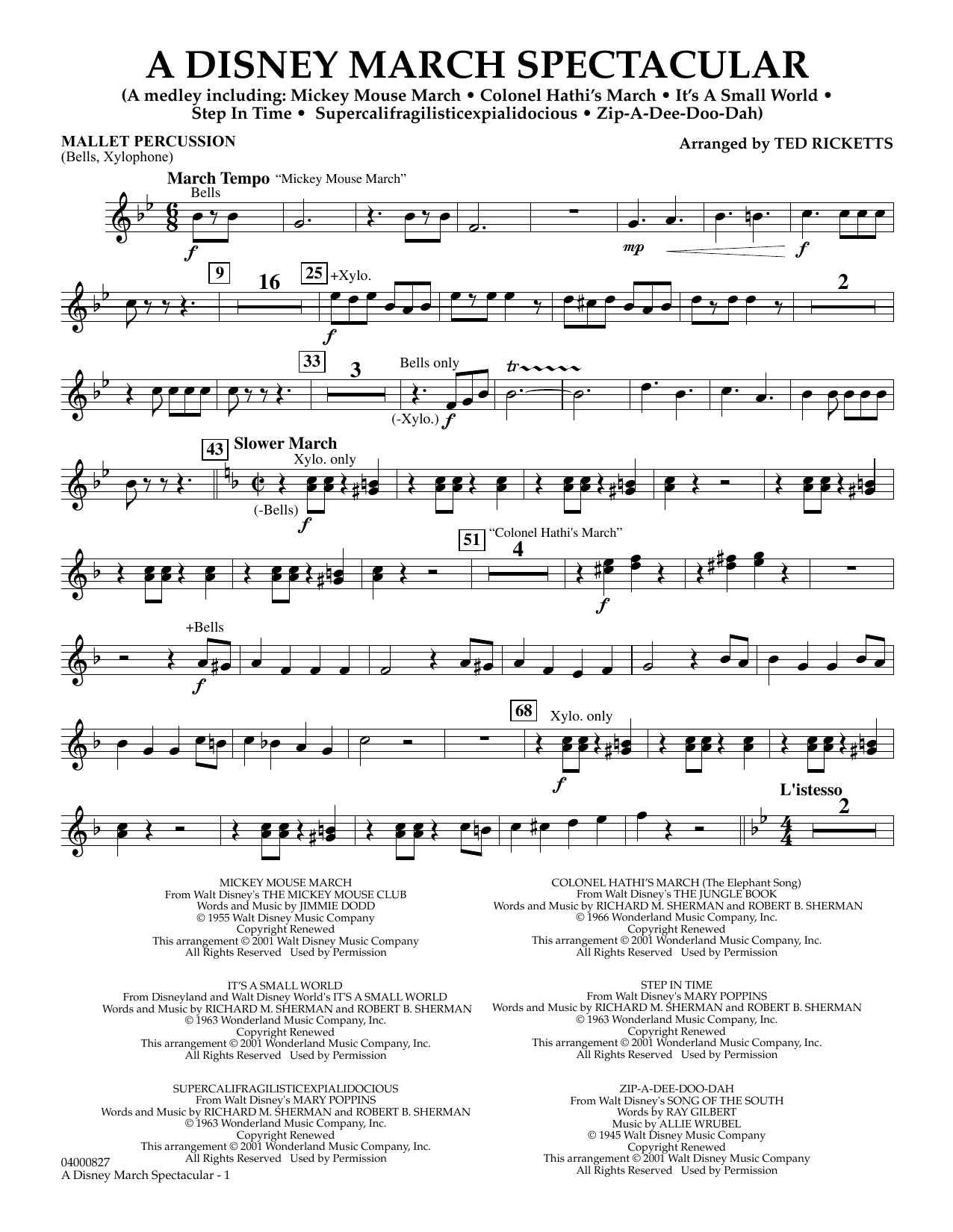 The magical music world of Walt Disney is responsible for some of the most memorable marches ever written. Including Mickey Mouse March, Colonel Hathi's March, Step In Time, It's A Small World, Zip-A-Dee-Doo-Dah and Supercalifragilisticexpialidocious, this highly entertaining medley is sure to raise a smile.
