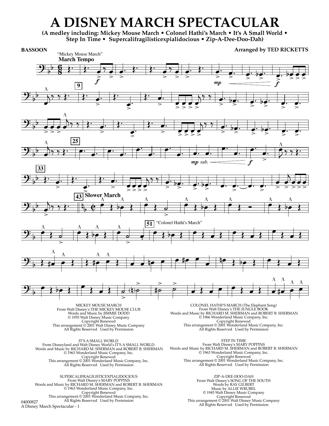 The magical music world of Walt Disney is responsible for some of the most memorable marches ever written. Including Mickey Mouse March, Colonel Hathi's March, Step In Time, It's A Small World, Zip-A-Dee-Doo-Dah and Supercalifragilisticexpialidocious, this highly entertaining medley is sure to raise a smile.
