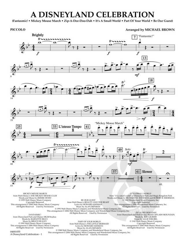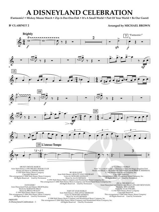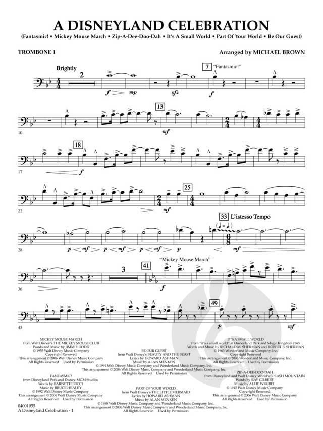 Die 50-Jahr-Feier von Disneyland ist in vollem Gange. Was könnte da besser sein als ein schrilles Medley mit einigen der großen musikalischen Momente, die mit dieser amerikanischen Ikone der Familienunterhaltung verbunden sind? Dieses rasante und fantastisch klingende Arrangement enthält: Fantasmic Main Theme, Zip-A-Dee-Doo-Dah, It's a Small World, Be Our Guest, A Dream is a Wish Your Heart Makes, und natürlich den Mickey Mouse March.