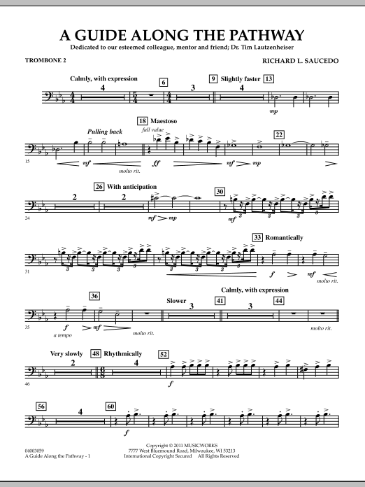 This intense and emotional work was commissioned by the Indiana Music Educators Association and was premiered at the 2011 IMEA Convention with the composer conducting. Written as a gift to longtime friend of music education, Dr. Tim Lautzenheiser, the piece is basically lyrical in nature with beautiful lines and colors. A brief faster section, in the words of the composer, describes that uncomfortable time when we are desperately trying to find ourselves. The piece ends on a solemn yet reaffirming note, reminding us of the importance of guides and mentors along life's pathway. Dur: 5:00