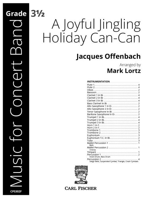 A Joyful Jingling Holiday Can-Can ist ein energiegeladenes, festliches Arrangement, das Jacques Offenbachs berühmten Can-Can aus Orpheus in der Unterwelt mit fröhlichen Weihnachtsjingles verbindet. Diese lebhafte Komposition verbindet die rasante Melodie des Can-Can mit vertrauten Wintermelodien und schafft so ein mitreißendes und launiges Fest. Die hellen Blechbläserfanfaren, die funkelnden Holzbläser und das energiegeladene Schlagzeug fangen die Aufregung der Jahreszeit ein. Von den ersten beschwingten Tönen bis zum fulminanten Finale bietet dieses Stück ununterbrochenen Spaß und ist damit eine perfekte Ergänzung für jedes Winterkonzert.