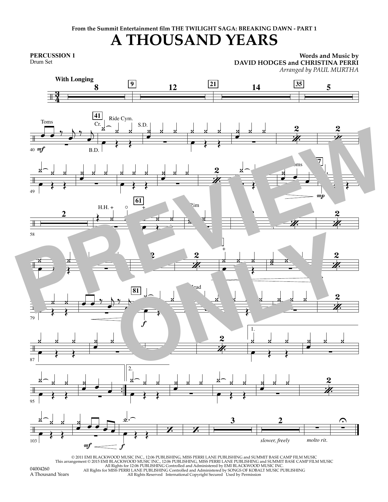 Die bekannte Ballade von Christina Perri aus dem Twilight-Film. Paul Murtha hat den Popsong leicht im 3/4-Takt arrangiert. Ideal für Jugendblasorchester.