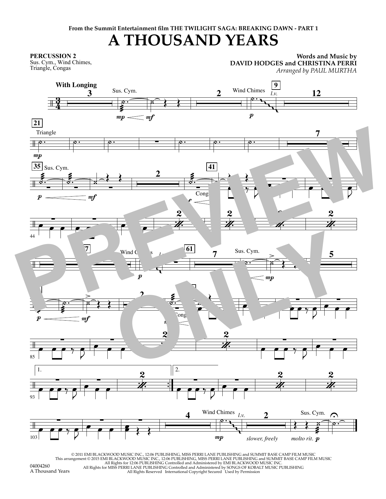 Die bekannte Ballade von Christina Perri aus dem Twilight-Film. Paul Murtha hat den Popsong leicht im 3/4-Takt arrangiert. Ideal für Jugendblasorchester.