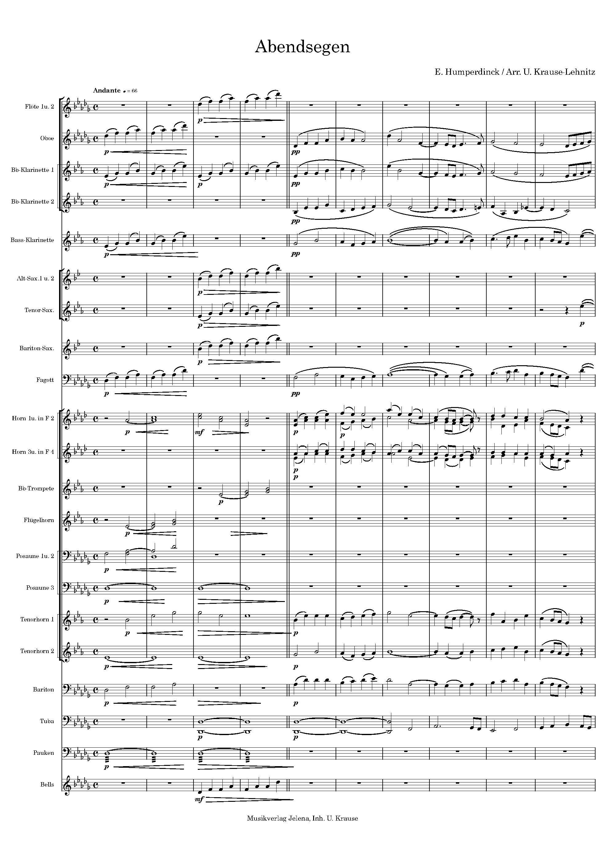 Der "Abendsegen" von Humperdingk ist eines der schönsten Lieder aus der Märchenoper "Hänsel und Gretel", immer wieder gern in Weihnachtskonzerten gehört und gern gespielt. Hier gibt es eine nagelneue Komplettbearbeitung für Blasorchester.