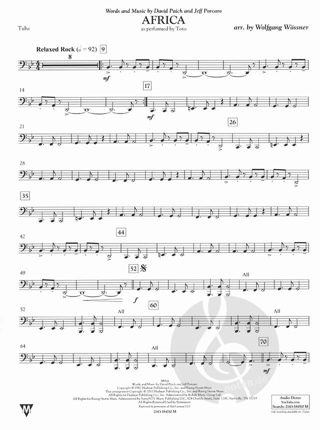 Als die Bandmitglieder der Rockband TOTO Africa schrieben, wollten sie den Song bereits aufgeben und ihn aus dem geplanten Album herausnehmen, da es schon so lange gedauert hatte, die passende Melodie zu finden. Sie konnten damals nicht ahnen, dass dieser Song ein internationaler Megahit werden sollte! Viel Spaß mit diesem tollen Arrangement im Schwierigkeitsgrad 3 von Wolfgang Wössner.