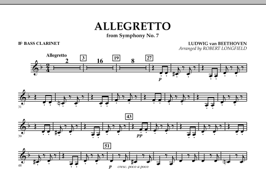 Dieser Satz aus Beethovens Symphonie Nr. 7 ist eines der bekanntesten und meistgespielten Themen des Meisters. Kürzlich war er im Oscar-prämierten Film The King's Speech zu hören. Hier ist eine gekonnte und wirkungsvolle Bearbeitung für junge Bands von Robert Longfield. Eine großartige Möglichkeit, die klassische Periode der Musikgeschichte in jedem Programm zu präsentieren. Dauer: 2:45