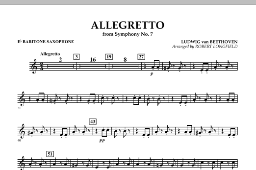 Dieser Satz aus Beethovens Symphonie Nr. 7 ist eines der bekanntesten und meistgespielten Themen des Meisters. Kürzlich war er im Oscar-prämierten Film The King's Speech zu hören. Hier ist eine gekonnte und wirkungsvolle Bearbeitung für junge Bands von Robert Longfield. Eine großartige Möglichkeit, die klassische Periode der Musikgeschichte in jedem Programm zu präsentieren. Dauer: 2:45