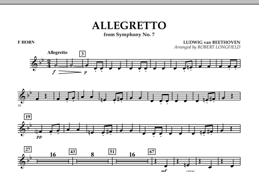 Dieser Satz aus Beethovens Symphonie Nr. 7 ist eines der bekanntesten und meistgespielten Themen des Meisters. Kürzlich war er im Oscar-prämierten Film The King's Speech zu hören. Hier ist eine gekonnte und wirkungsvolle Bearbeitung für junge Bands von Robert Longfield. Eine großartige Möglichkeit, die klassische Periode der Musikgeschichte in jedem Programm zu präsentieren. Dauer: 2:45