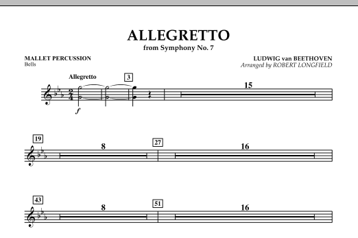 Dieser Satz aus Beethovens Symphonie Nr. 7 ist eines der bekanntesten und meistgespielten Themen des Meisters. Kürzlich war er im Oscar-prämierten Film The King's Speech zu hören. Hier ist eine gekonnte und wirkungsvolle Bearbeitung für junge Bands von Robert Longfield. Eine großartige Möglichkeit, die klassische Periode der Musikgeschichte in jedem Programm zu präsentieren. Dauer: 2:45