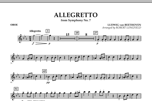 Dieser Satz aus Beethovens Symphonie Nr. 7 ist eines der bekanntesten und meistgespielten Themen des Meisters. Kürzlich war er im Oscar-prämierten Film The King's Speech zu hören. Hier ist eine gekonnte und wirkungsvolle Bearbeitung für junge Bands von Robert Longfield. Eine großartige Möglichkeit, die klassische Periode der Musikgeschichte in jedem Programm zu präsentieren. Dauer: 2:45