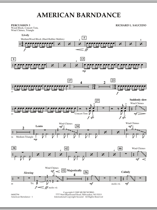 Rhythmic and energetic, this lively work contains elements of an early American character but also features a poignant, calmer section with a lighter texture and interlaced lyric motifs. The piece builds to a dramatic peak with a powerful and majestic statement by the full ensemble. The final segment, however, becomes more and more frenzied with mixed meters and relentless percussion figures as it races to an exciting conclusion. Filled with humor and creativity, this unique composition will easily find a place in your contest or festival repertoire. Dur: 3:35 (Grade 4)
