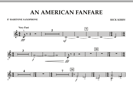 In this dynamic concert opener, Rick Kirby incorporates the normally hymn-like strains of America (My Country, 'Tis of Thee) into a fast and energetic fanfare. The actual melody is stated only once in its entirety, and many liberties are taken with both melodic and harmonic elements of the original. Breathtaking! Dur: 1:40 (Grade 4)