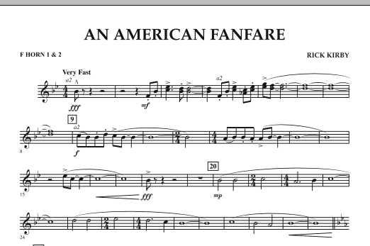 In this dynamic concert opener, Rick Kirby incorporates the normally hymn-like strains of America (My Country, 'Tis of Thee) into a fast and energetic fanfare. The actual melody is stated only once in its entirety, and many liberties are taken with both melodic and harmonic elements of the original. Breathtaking! Dur: 1:40 (Grade 4)