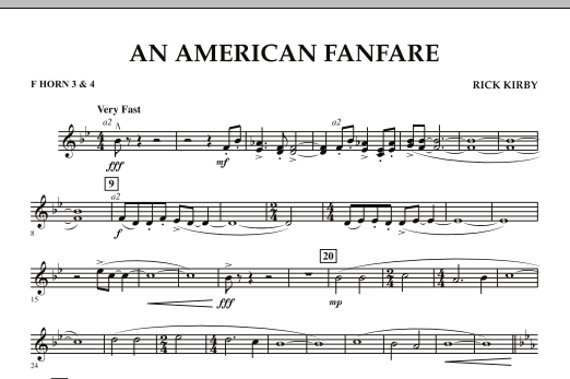In this dynamic concert opener, Rick Kirby incorporates the normally hymn-like strains of America (My Country, 'Tis of Thee) into a fast and energetic fanfare. The actual melody is stated only once in its entirety, and many liberties are taken with both melodic and harmonic elements of the original. Breathtaking! Dur: 1:40 (Grade 4)