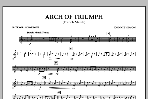 Written in a traditional French style this stately march draws its title from the famous Arc de Triomphe in Paris. Terrific as a change of pace march, this unique work is solidly scored with fanfare-like figures and appealing melodies. Dur: 2:00