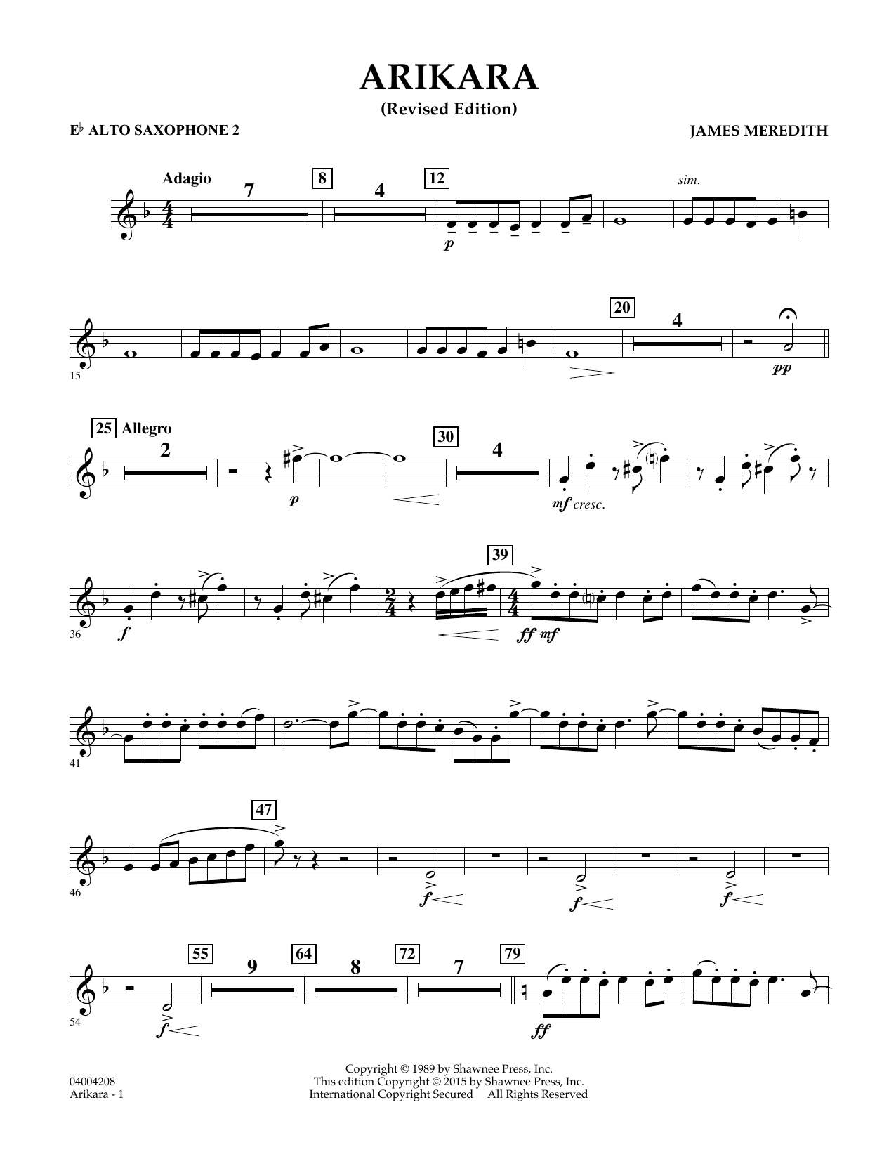 Inspired by the Arikara (uh-RIK-a-RAH) tribe of Native Americans based in North Dakota, this work by James Meredith is an evocative piece without portraying any specific event or story. Opening with a plaintive flute solo supported by an exotic percussion backdrop, the piece features a chorale-like statement in the winds before moving to the faster and more rhythmic main section. Mixing early American imagery with striking dissonances, this is an effective and unique offering with limited technical demands. Dur: 4:50