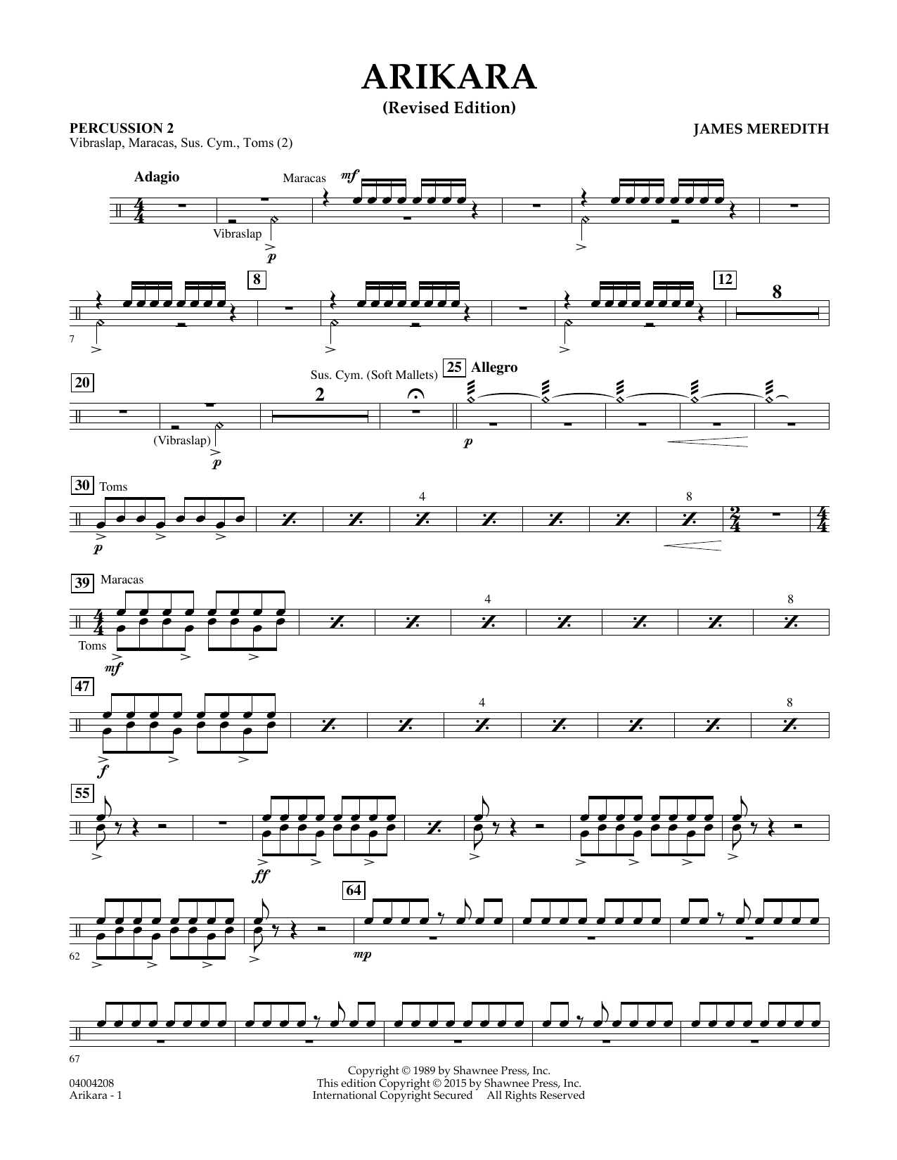 Inspired by the Arikara (uh-RIK-a-RAH) tribe of Native Americans based in North Dakota, this work by James Meredith is an evocative piece without portraying any specific event or story. Opening with a plaintive flute solo supported by an exotic percussion backdrop, the piece features a chorale-like statement in the winds before moving to the faster and more rhythmic main section. Mixing early American imagery with striking dissonances, this is an effective and unique offering with limited technical demands. Dur: 4:50