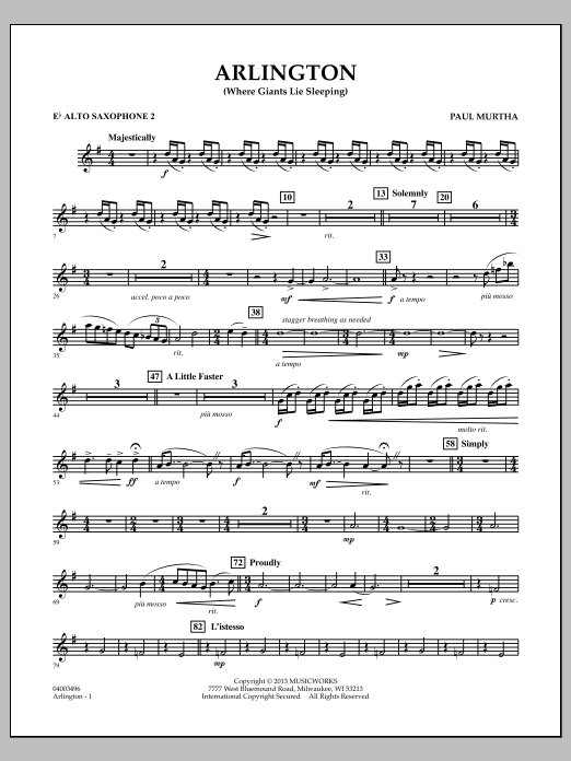 Composed as a tribute to generations of American servicemen and women buried at Arlington National Cemetery near Washington, D. C. , this powerful and emotional work is a fitting addition to any memorial occasion or concert. Offstage trumpets announce the opening theme following by reverent strains and a solemn statement of My Country, 'Tis of Thee. The piece develops and builds gradually, reaching a heroic climax with the familiar hymn God of Our Fathers before returning to a quiet and reflective mood as the offstage trumpets return. Dur: 7:30