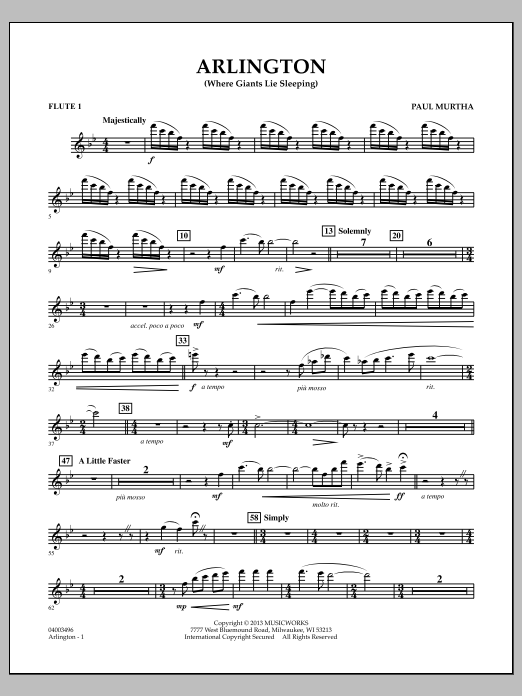 Composed as a tribute to generations of American servicemen and women buried at Arlington National Cemetery near Washington, D. C. , this powerful and emotional work is a fitting addition to any memorial occasion or concert. Offstage trumpets announce the opening theme following by reverent strains and a solemn statement of My Country, 'Tis of Thee. The piece develops and builds gradually, reaching a heroic climax with the familiar hymn God of Our Fathers before returning to a quiet and reflective mood as the offstage trumpets return. Dur: 7:30