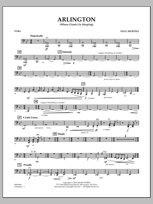 Composed as a tribute to generations of American servicemen and women buried at Arlington National Cemetery near Washington, D. C. , this powerful and emotional work is a fitting addition to any memorial occasion or concert. Offstage trumpets announce the opening theme following by reverent strains and a solemn statement of My Country, 'Tis of Thee. The piece develops and builds gradually, reaching a heroic climax with the familiar hymn God of Our Fathers before returning to a quiet and reflective mood as the offstage trumpets return. Dur: 7:30