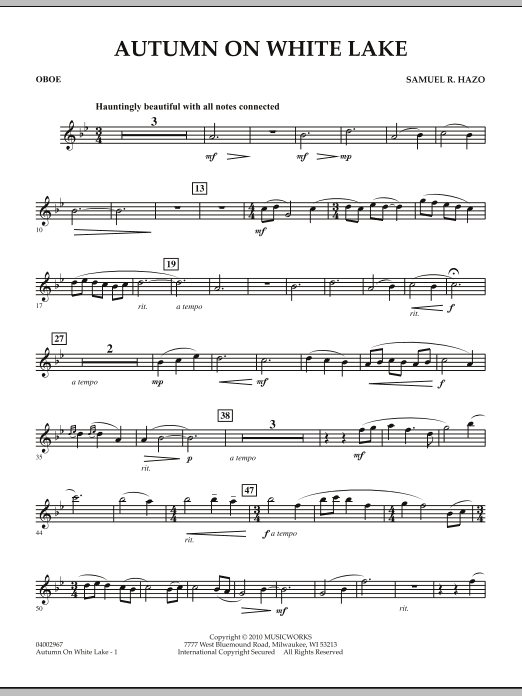 Autumn on White Lake was commissioned by Lakeland High School of White Lake, Michigan. Sounds that conjure golden leaves, crisp air and rustic memories envelop your ensemble as well as the audience in this flourishing work as it recalls an October visit to this beautiful region. Dur: 6:30