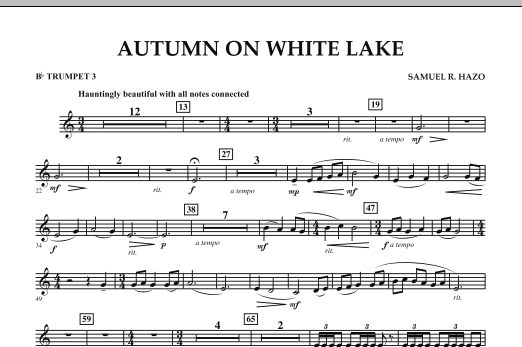 Autumn on White Lake was commissioned by Lakeland High School of White Lake, Michigan. Sounds that conjure golden leaves, crisp air and rustic memories envelop your ensemble as well as the audience in this flourishing work as it recalls an October visit to this beautiful region. Dur: 6:30