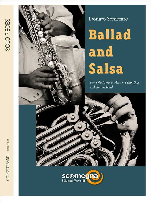 "Ballad and Salsa" von Donato Semeraro ist eine Komposition in zwei Sätzen, die aus der tiefen Freundschaft zwischen dem Komponisten und dem Hornisten Nilo Caracristi entstanden ist, dem sie anlässlich seines 50. Das Stück wird in zwei Fassungen präsentiert: Horn (oder Alt-/Tenorsaxophon) und Klavier, und Horn (Alt- oder Tenorsaxophon) und Blasorchester. Die Ballade ist ein langsames, melodisches Stück, das sich durch süße, berührende und beschwörende Klänge auszeichnet. Die scheinbar melancholische Atmosphäre erreicht an bestimmten Stellen der Komposition kraftvolle Momente, ohne jemals ihren romantischen Charakter zu verlieren. Die Salsa entwickelt sich um ein rhythmisches Ostinato, das den Rohrbläsern zugeordnet ist, während die Klangfarbe der Blechbläser und der Schlagzeugrhythmus dem Stück den Klang südamerikanischer Ensembles verleihen. Der Solist, der sich von der Begleitung abhebt, phrasiert und behält dabei die für karibische Tänze typische "Wärme" und "Farbe" bei.