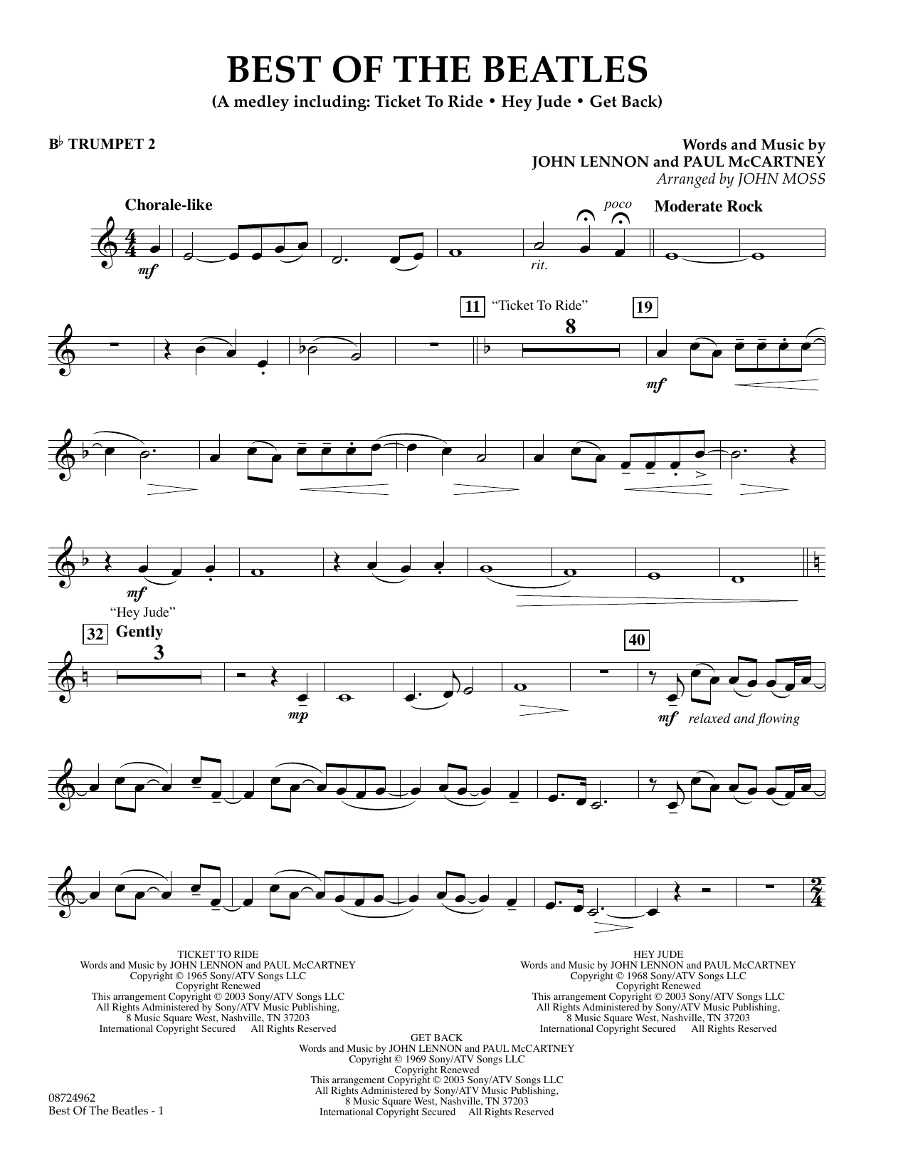 Klasse 2 Die Musik von John Lennon und Paul McCartney wird nie alt. John Moss hat aus drei Klassikern der Beatles ein fröhliches Medley für junge Spieler zusammengestellt. Ticket to Ride, Hey Jude und Get Back sind Musikstücke, die alle Generationen ansprechen! Dauer 4:45