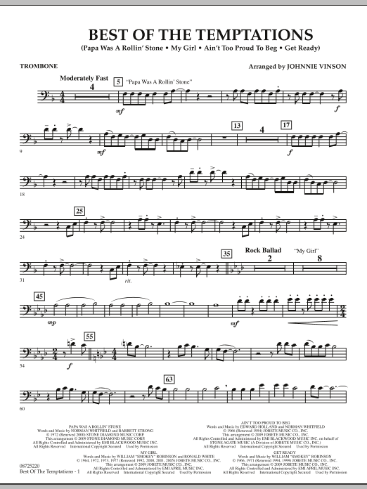 Keine Gruppe hat mehr dazu beigetragen, den Detroit-Motown-Sound der 60er Jahre zu etablieren als die Temptations. Hier ist ein Medley ihrer größten Hits, arrangiert für junge Spieler. Enthält: Ain't Too Proud to Beg, Papa Was a Rollin' Stone, My Girl und Get Ready.